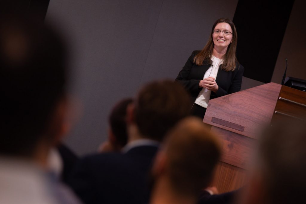 Sarah gave a brief overview of what it means to be ‘Chief Cashier’ – which she encapsulated as the “responsibility to make sure that people have banknotes that they can use with confidence.” That includes everything from the design of a bank note, through production, issuance, and finally the destruction and recycling of them.